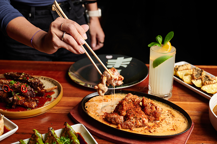 Crispy Japanese karaage chicken, served sizzling hot and drenched in rich kimchi cheese sauce right in front of you.