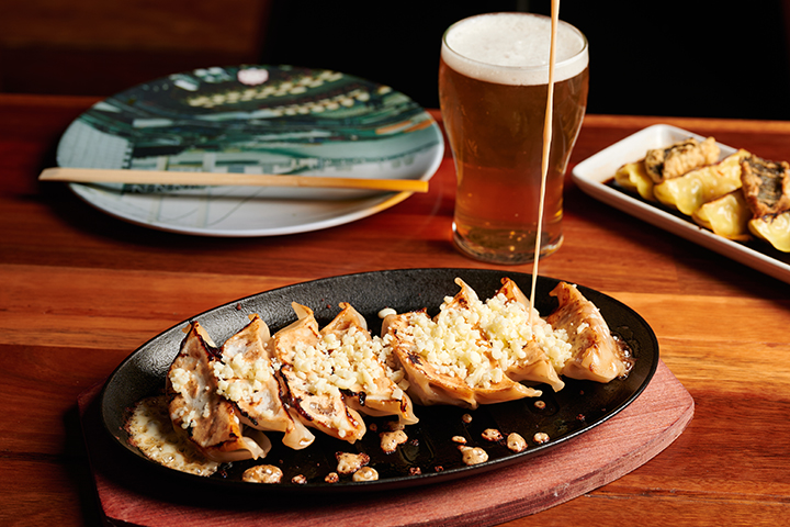 8 pieces of golden pork gyoza grilled to perfection and served on a sizzling hot plate. Finished tableside with bubbling kimchi cheese sauce poured over the top.